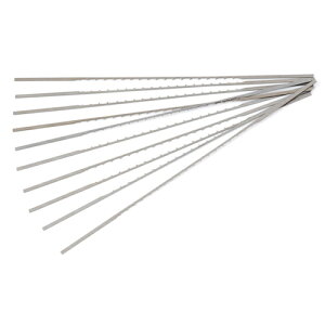 【用途】木工厚板の切断に。【仕様】●10本入 全長150mm 厚み0.53mm 幅1.7mm 山数19 材質SK4 トビ目。【商品サイズ】奥行150×幅1×高さ1mm 重量12g
