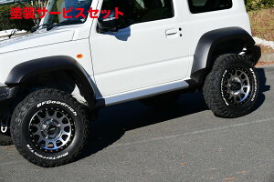 車種: ジムニーシエラ 型式: JB74W 備考: 1-3型 純正オーバーフェンダーからはみ出さない設計で車検OK。 サイドアンダーガーニッシュの外側より出幅約5cm、下端より約9cmと約6cmの位置...