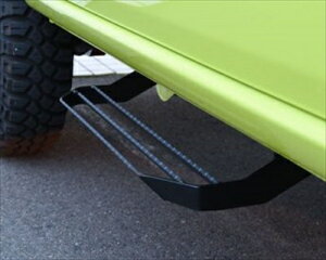 スクエアデザインのジムニーに直線的なサイドステップの相性はバツグン! 無骨なサイドシルの溶接部分を隠すようにデザインし細やかな部分までスタイリッシュに演出。またブラック2トーンルーフ車であれば同色にすることでより一層スタ