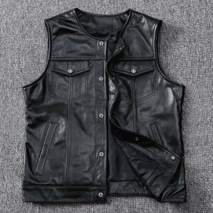 メンズレザー ハレー ジャーキン ベスト 本革 牛革 大きいサイズあり バイクジャケット ライダース S〜4XL 黒