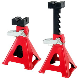 ジャッキスタンドの2個セットです! 整備しずらかったタイヤ交換やオイル交換、低い場所の整備に役立ちます! 1台につき重量3tまで対応!組立や使用方法はとっても簡単です! 【商品詳細】 サイズ:18.5×17×29.5〜43cm...