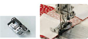押さえのガイドを布端に合わせて一定幅でぬうことができます。1/4インチのピーシングが簡単です。