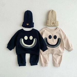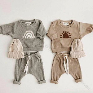 【90 100 110 120】【上下セット】【5colors】【綿素材】おしゃれなトレーナーとパンツのセットです。ウエストゴムでゆったりとしたはき心地です。デイリーユースに最適、セットでの着用はもちろん...