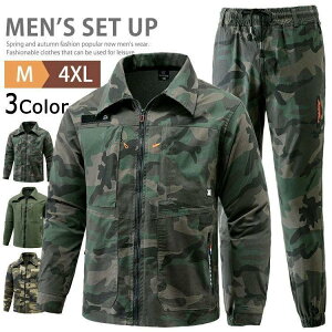 送料無料 クーポン 迷彩服 上下セット メンズ 上下 長袖 軍服 作業服 セットアップ ワークジャケット ミリタリーパンツ アウター