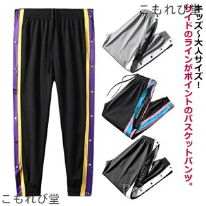 【2XS〜3XL】【サイドボタン】【子供〜大人】サイドのラインがポイントのバスケットパンツ。スナップボタン付きで着替えもラクラク!キッズ〜大人サイズ!柔らかく、通気性も良いスウェット素材を使用。一日中快適に着用できます。ゆっ