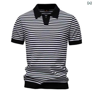 夏 ゴルフ ニット 半袖 メンズ ストライプ ラペル ポロシャツ ジャージ 男性 新作 ブラック ライトグリーン アーミー トップス