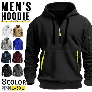パーカー メンズ ハーフジップ スウェットプルオーバー 長袖 無地 トップス フード付き カジュアル ジャージ スポーティ ストリート系 ゴルフ スポーツ ダンス 春秋 秋冬32サイズ:LXLXXLXXXL...