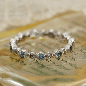 アクアマリンとダイヤモンドが入るフルエタニティリング。ちらっと視界に入ったときの湧き上がる高揚感。きりっとかっこよく気持ちをあげてくれます。一周ぐるりと宝石が入ったフルエタニティリングは人