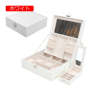 大容量の2段式の鍵付きジュエリーボックスです。 ピアスやネックレスや時計など仕切りがついているので、きれいに収納できます。 【サイズについて】 画像をご参照ください。 【カラーについて】 生産ロットにより柄の出方や色の濃淡が