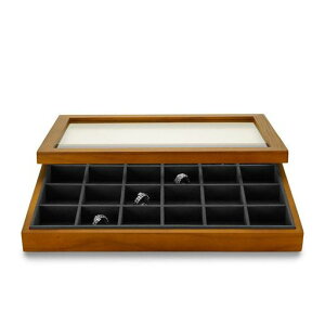 カラー:無地のガラス、フローラガラス、波模様 サイズ:26cm*19.5cm*16cm 材質:木製 【ガイド】 ※上層部:仕切り収納:4個、 リング置き:9列 、フリースペース:幅11×奥行8、窓から見える1段目には...