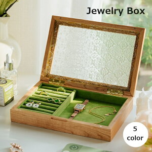 ジュエリーボックス アクセサリーケース 大切な物を美しいウッドケースに!天然木と海棠花をモチーフしたガラスの組み合わせは見た目もかわいく取り出し、片付けの気分も上がります。