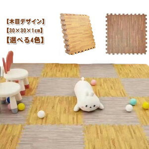 【木目デザイン】【30×30×1cm】【選べる4色】赤ちゃんのいるご家庭でも安心してお使いいただける、フローリングの傷防止等に最適なジョイントマットです。弾力のある素材が衝撃を吸収。階下に音が響きにくくなるので...