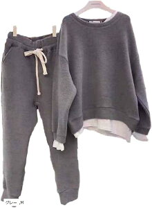 ・メイン素材: ポリエステル・素材構成: 綿ポリ・裏起毛スウェット上下で包み込まれる心地よさ。女性らしく丸みを帯びたシルエットで華奢見え効果は抜群。シンプルながらも女性らしい、やわらかな雰囲気のセットです。・滑らかでぽって