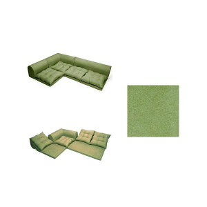 【商品名】 フロアソファー 3点セット 【グリーン スエード生地】 高さ33cm 1人掛け 2人掛け コーナー付き 日本製 KSA-337GRN 【ジャンル・特徴】 フロアソファー ローソファー 分割式...