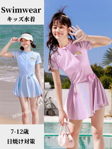 ワンピース水着 ジュニア水着 スイムウェア ラッシュガード 半袖 スカート スイムスーツ インナーパンツ付き ビーチウェア 水泳 スクール水着 キッズ ジュニア 練習着 子供 みずぎ キッズ水着 リゾート...
