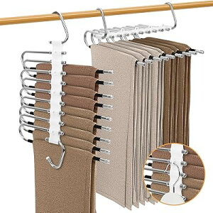 スラックスハンガー 2本セット 折りたたみ可能 9段 収納ハンガー デニム ロングスカートハンガー ステンレス 荷重力 乾湿両用 滑り止め 省スペース 収納カ 跡がつかない 皺防止 180°回転フック ハンガー穴付き...