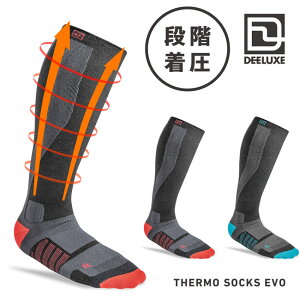 DEELUXE □商品詳細 ■MODEL:THEMO SOCKS EVO ■小売希望価格:3,800+(税) ■サイズ:S (21.5cm-24.5cm) / M (24.5cm-26.5cm) / L (26.5cm-28.5cm)...