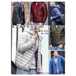 ダウンジャケット メンズ 撥水 軽量 保温 防風 冬 冬服 ダウンコート フード付き キルティング お兄系カラー:ブラック、グレー、レッド、ブルー★普段着より小さめで、1-2サイズ上をお勧めます。M:肩幅42...