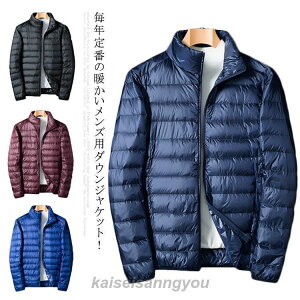 ダウンジャケットメンズフードなし立ち襟スタンドカラー軽量薄手ダックダウン大きいサイズショート上品アウター冬無地暖かい