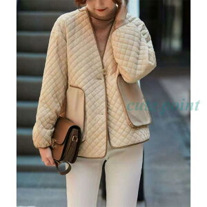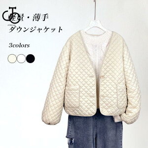 キルティングジャケット レディース ダウンジャケット 軽薄 ノーカラー あったか 冬 ジャケット ダウン アウター ノーカラージャケット 大きいポケット キルティング 冬ジャケット カジュアル 通勤 ベージュ...