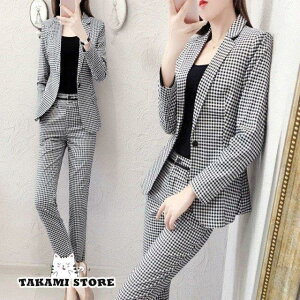 レディース おしゃれ ジャケット チェック ギンガムチェック パンツ スーツ セット 大きいサイズ 3L 4L きれいめ 服装 カジュアル オフィスカジュアル 通勤服 オフィス 韓国 ファッション 20代...