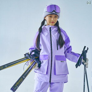 ジャケット スキー フード付き スーツ ウェア 子供 ティーンエイジャー 防風 防水 プラス 綿 3L オーバーオール