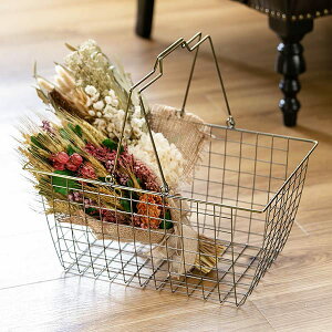 カゴ 籠 小物入れ ワイヤー 持ち手付き ハンドル付き 軽量 角型 スクエア 四角 長方形 ディスプレイ用 店舗什器 店舗用 陳列 シンプル おしゃれ パン屋 雑貨屋 レストラン カフ