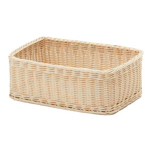 軽量ポリプロピレン素材の手編みバスケット。 天然素材のような自然な風合いで、手指にもやさしい質感。 持ち手ホール付きで、持ち運びにも便利。 籐などの素材と異なり、水洗いできるので衛生的。 サイズ(約):W39×D28×H12.3p、重...