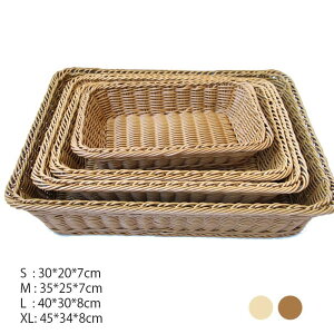 ※商品情報 色:ベージュ、コーヒー サイズ:S【30*20*7cm】、M【35*25*7cm】、L【40*30*8cm】、XL【45*34*8cm】 素材:pp模藤 用途:スーパー、ホテル、パン屋物品展示 特徴:1.水で洗うことができ...