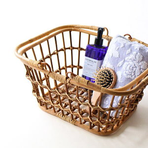 スクエアバスケット 皮付きラタンのハンドル付きスクエアバスケットは ラタンのしなやかさと強度を活かした 透かし編みのオシャレなデザイン すべて天然素材のバスケットは 使い込むほど色艶が増し 綺麗な飴色に変化したり...