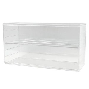 材質:本体・フタ・棚/スチロール樹脂 原産国:日本 サイズ:29.5x11.5x15.3cm フロントオープンタイプなので、フィギュアの追加や変更が簡単、倒れてもさっと起こせます。