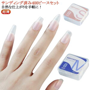 サンディング済み 200ピースセット。自然な仕上がりを手軽に!サンプル作成やネイルチップの練習にも最適。スタンダードな形状で、綺麗で理想的なネイルチップを作成可能。サンディング加工済みで、面倒な手間を省いてジェルを塗っても