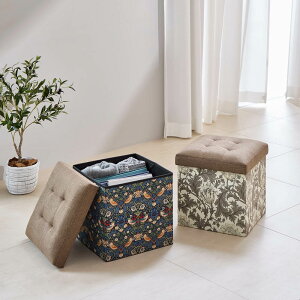 便利なサービスのご紹介商品の仕様・サイズ商品画像の説明 普段使いしやすい折りたたみ式収納ボックスに、ウィリアム・モリスの繊細な柄をまとわせ、暮らしにそっと彩りを添えるアイテムに仕立てました。収納とスツール、ふたつの役割