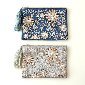 エンブロイダリー ビーズ刺繍が施された インドからやって来た布製の小物 手仕事ならではの温かみと 細やかな装飾が見事です 二色のベーシックなカラーの ビーズ刺繍と装飾は 大人の雰囲気をただよわせ プレゼントにも喜ばれそうです マ