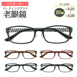 度数+0.25から+6.00まで20種類の中からご注文いただけるセミオーダー老眼鏡(リーディンググラス)です。 老眼鏡が初めての方でも選びやすい弱めの度数から、強度度数まで幅広くお選びいただけます。 メーカー直売のため、お安くご提供さ