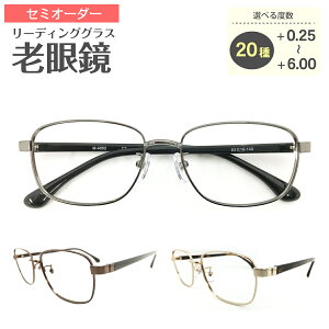 度数+0.25から+6.00まで20種類の中からご注文いただけるセミオーダー老眼鏡(リーディンググラス)です。 老眼鏡が初めての方でも選びやすい弱めの度数から、強度度数まで幅広くお選びいただけます。 フレームは、オーソドックスな紳士フ