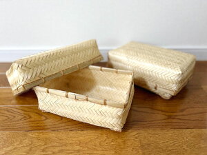 竹 W180mm×D100mm×H80mm ベトナム シンプルな竹かごです。ふたもかぶせるタイプなので、中身とふたを別々のカゴとして使用していただくこともできます。また、大切な人へのプレゼント用のギフトボックスなどでの使用など、使い方...