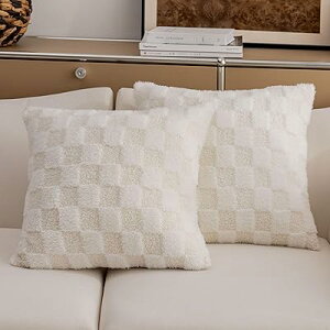 クッションカバー 45 45(18x18インチ)ソフト ソファ用クッション スクエア プラッシュ枕カバー リビングルーム 寝室 ソファベンチ用 2枚セット 45x45cm クリーム入りブランド色M-クリーム入...
