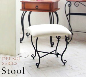 スパニッシュテイストデザインのDEL SOL(デルソル)シリーズの、スツールです。美しい曲線を描くフレームと可愛い猫脚、高級感のある張地が印象的なデザインのスツール。お部屋を華やかに演出します。丈夫な合成皮革の座面はお手入