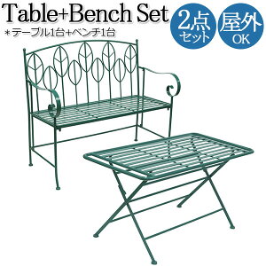 屋外用テーブル・ベンチ2点セット テーブル1台・ベンチ1脚 ベランダやカフェの軒下などでも違和感なく馴染む、シンプルで優しいデザインのガーデンセット テーブルは折畳式のため、...