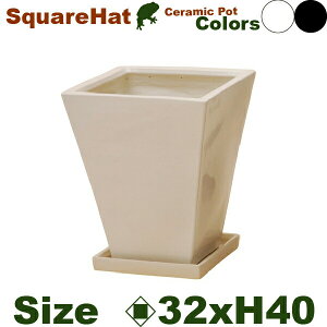 受皿付植木鉢(プランター/ポット) 【外寸】ロ32cm×H40cm(内ロ27cm) 【材質】陶器製 【カラー】ホワイト、シャイニーブラックからお選びください 【底穴】あり(受皿付) ※植物育成用途の耐水性はあり