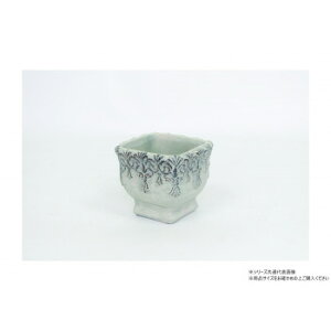 サイズ : W160×D160×H145mm・内径 : W135×D135mm カラー : アイボリーゴールド 材質 : セメント 仕様 : 底穴あり、エンボスデザイン