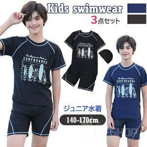 140 150 160 165 170 着脱簡単 セパレート水着 キッズ水着 男の子 半袖 3点セット 子ども UV対策 ハーフパンツ