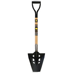 庭木・果樹の植え替え時の根切り・穴掘りに、オールスチール製 サイズ: 全長:940mm 頭部肩幅:232mm 頭部先幅:105mm 頭部長さ:255mm 頭部板厚:1.7mm パイプ柄部板厚:1.2mm...