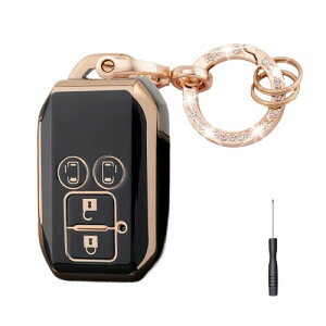 (RUNFANGYUAN) 適合 スズキ キーケース スマートキーカバー TPU 軽量 傷防止 耐衝撃 汚れ 落下 スズキ キーカバー 対応 新型スペーシア スペーシアカスタム ソリオ フレアワゴン 等に適用(ブラックゴールド)...