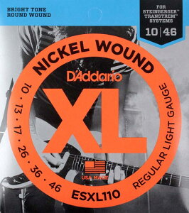 ダダリオ ESXL110 ダブルボールエンド ギター弦です。エンドピンが両側に付いたスタインバーガー用ギター弦です。ゲージ:10.13.17.26.36.463セットでの販売です。