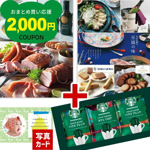 お熨斗、写真入りメッセージカード、ラッピング、手提げ袋、ご希望の方は無料! 簡単につくれるメッセージカードの作り方は商品説明をご確認下さい。 ●グルメが選べるカタログギフトとスターバックスコーヒーのセット インスタ映え 写真付き