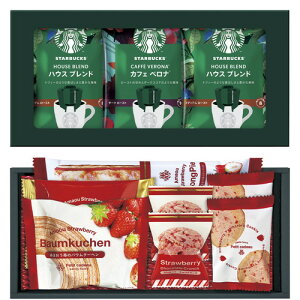 ■商品紹介:スターバックスコーヒーギフトとお菓子のセットでワンランクアップのひとときを。 ■商品内容:スターバックスオリガミドリップコーヒー(ハウスブレンド)×3、スターバックスオリガミドリップコーヒー(カフェベロナ)・