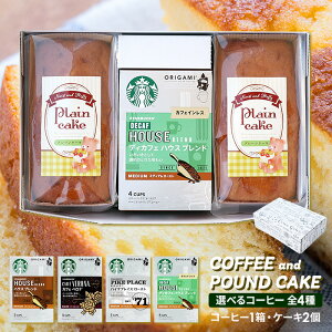 ※スターバックスコーヒー1個はお好みの種類をお選び下さい。パウンドケーキ プレーンが必ず1個入ります。※商品リニューアルに伴いコーヒーの内容量が5袋入→4袋入へ変更となりました。予めご了承のうえお買い上げ下さい。●商品内容/