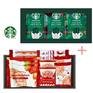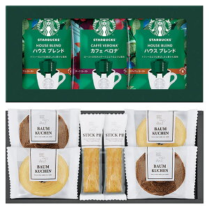 〇商品名:スターバックスコーヒー&スイーツギフト STB-252〇商品内容:スターバックスオリガミドリップコーヒー(ハウスブレンド9g×3・カフェベロナ9g×2)、バウムクーヘン(ココア・バニラ)×各2、スティックパイ(プレーン)×2...